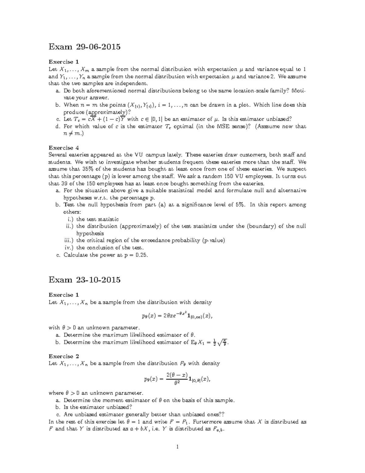 Tentamen 15 Vragen Statistics X Vu Studeersnel